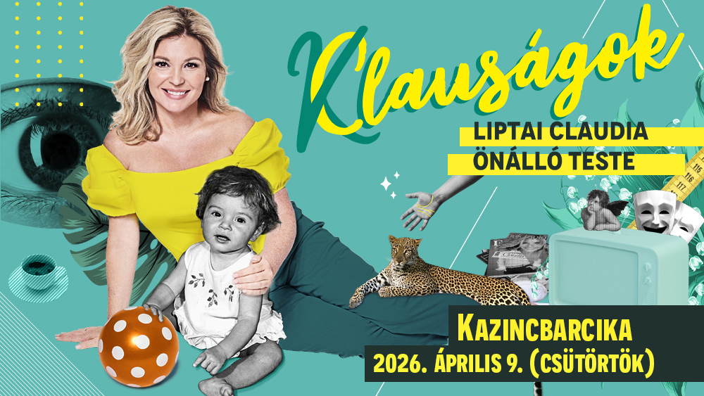 2026.04.09. 19:00 Egressy Béni Művelődési Központ, Kazincbarcika Clauságok LIPTAI CLAUDIA ÖNÁLLÓ TESTE Egressy Béni Művelődési Központ, Kazincbarcika 2026. április 9. (csütörtök) 19:00 12+ SZÍNHÁZ 90 PERC 7900 Ft, 8900 Ft TELT HÁZ! Az előadásra minden jegy elfogyott. ISMERTETŐ Egy egész ország ismeri Liptai Claudiát, most pedig az est folyamán őszintén, rengeteg humorral és öniróniával beszél életéről, pályájáról, sőt, színpadra viszi a legnagyobb félelmét is… „Az volt bennem, kell lennie valaminek, amit én magam hozok létre. Amit én írok, én adom elő, teljes egészében én vállalom érte a felelősséget. Szükséges, hogy időnként túllépjünk azokon a határokon, amelyeket magunk húzunk meg magunknak” – mesélte egyik interjújában a sokoldalú színésznő. Időutazás, ének-zene, őrült történetek, vidám és meghökkentő pillanatok – kár lenne róla lemaradni! A szervezők a változtatás jogát fenntartják. https://dudasjegyshop.hu/wp-content/uploads/2024/11/CLAUSAGOK.m4v SZEREPLŐK Liptai Claudia További információk a produkció adatlapján ide kattintva. GALÉRIA